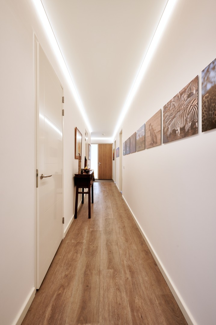 Der Flur und das Treppenhaus sind oft die ersten Eindrücke, die Besucher von Ihrem Zuhause bekommen. Spanndecken können hier mit indirekter Beleuchtung kombiniert werden, um einen einladenden und modernen Look zu erzeugen. In Zugangsbereichen bieten sie die Möglichkeit, Höhenunterschiede elegant zu kaschieren und den Raum optisch zu vergrößern.